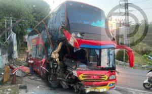 Patong – A driver has sustained serious injuries after a bus crash on Patong Hill. The Patong Police were notified of the accident at 5:45 A.M. this morning (March 23rd) shortly after it happened at a curve locally called Pla Ra Curve (fermented fish curve) near the Suwan Khriri Wong Temple (Patong Temple). Patong Police