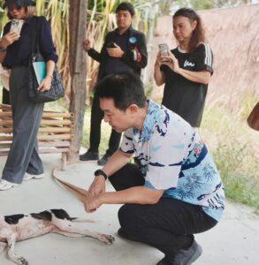 On April 20th, 2026, in Soi Sukhumvit 93, Porsmese Ngampiches, Mayor of Pattaya, along with Mr. Manoch Nongyai, Deputy Mayor of Pattaya, city executives, and relevant officials, visited the area to provide assistance to a stray dog after receiving a report that the animal had been severely injured by a dart shot into the center